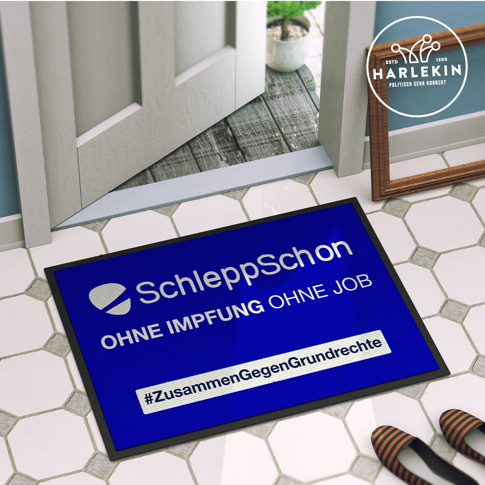 DIE WERBEANSTALT FUSSMATTE • SCHLEPPSCHON: OHNE IMPFUNG OHNE JOB-HARLEKINSHOP